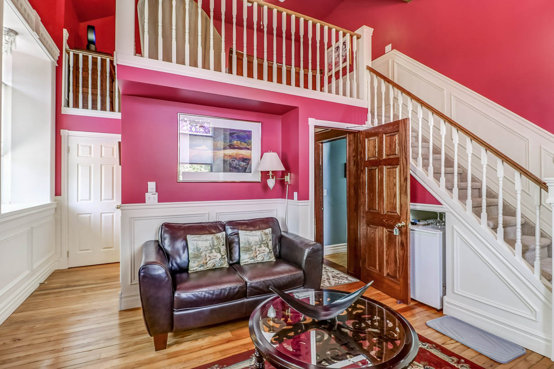 Having fallen into a state of disrepair, the building was purchased in November 2002. After a lengthly renovation, the building was totally transformed into a purpose built 6 suite Country Inn. As the ceilings and walls were opened up, school blackboards with writing still on them and the original tin ceilings were discovered. The renovations included pulling up the original inch and a quarter maple flooring and reinstalling it over a plywood subfloor. The original tin ceiling was taken down, sandblasted to remove the many layers of paint, and reinstalled in the dining room, foyer and library loft areas. It is difficult to describe the building with its 17 foot ceilings, oak paneled dining room, gothic chandelier...but as you look further at this website, the pictures may help to give an idea. When you arrive in person, you will be more than amazed!